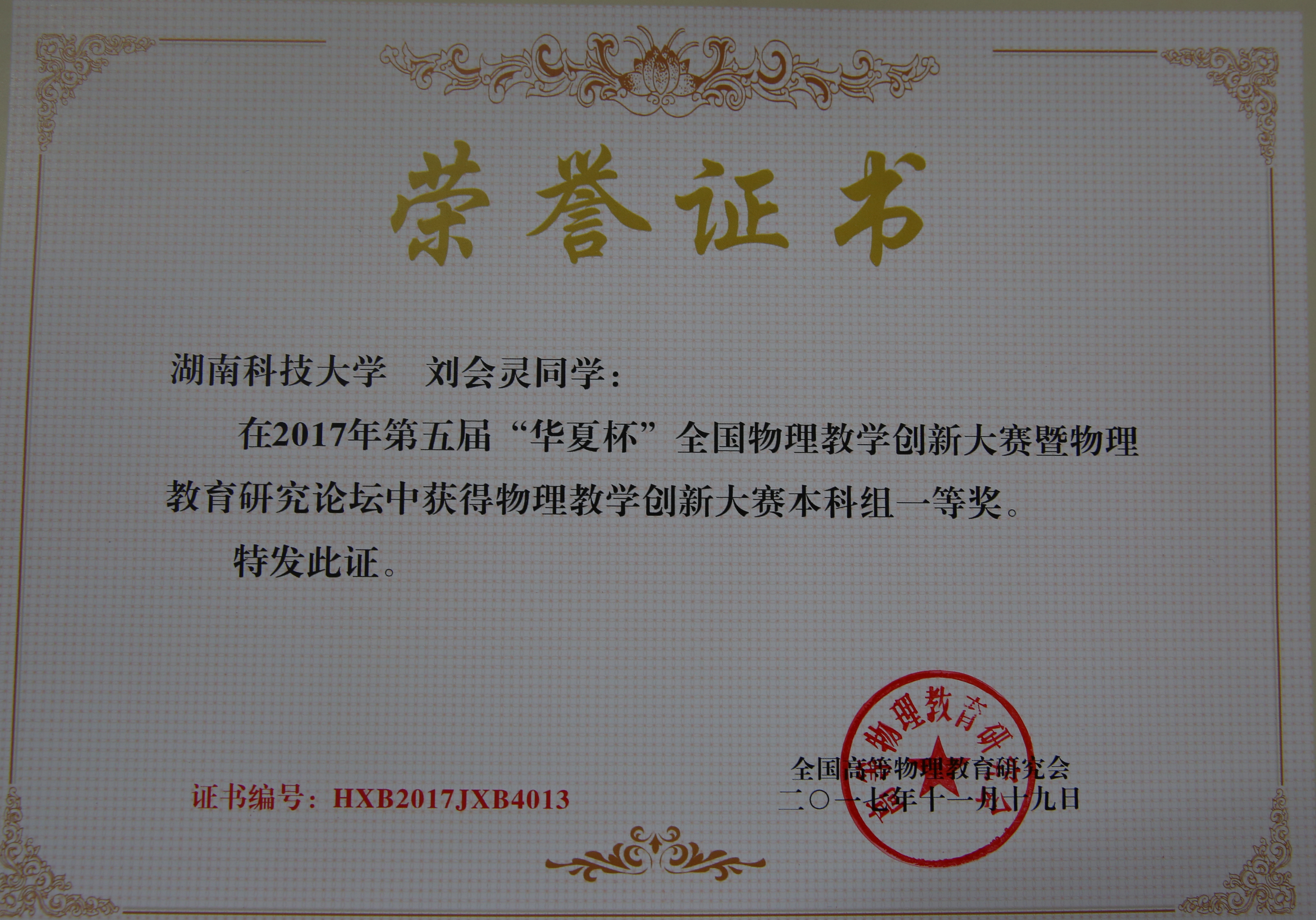 91自拍学子荣获第五届“华夏杯”全国物理教学创新大赛一等奖