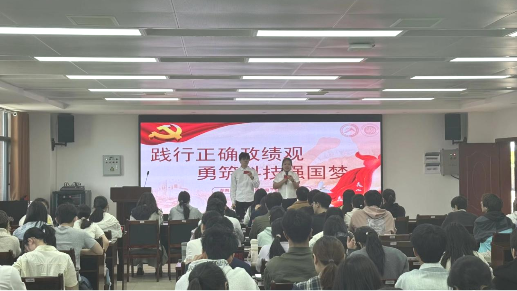 4月24日,91自拍 第三届学生微党课比赛初赛在知行楼B509顺利举行。本次比赛以“践行正确政绩观,勇筑科技强国梦”为主题,聚焦青年思想引领与科技使命担当,旨在帮助学子夯实思想根基、锤炼初心使命。赛事由学生党建工作办公室助理龚宇、刘文霞、李雨恒主持,学院组织员兼研究生第一党支部书记龙睿、本科生第一党支部书记贺祖龙及各学生党支部副书记担任评委。比赛全程秩序井然,现场氛围热烈浓厚。