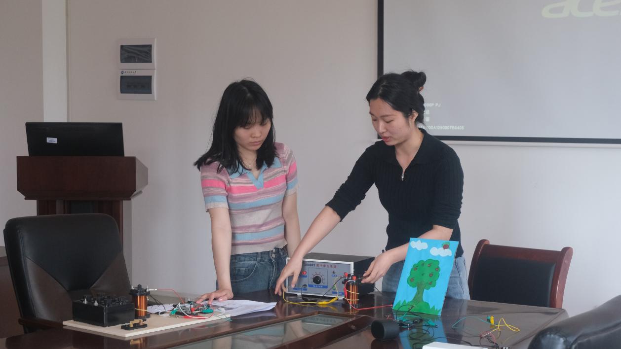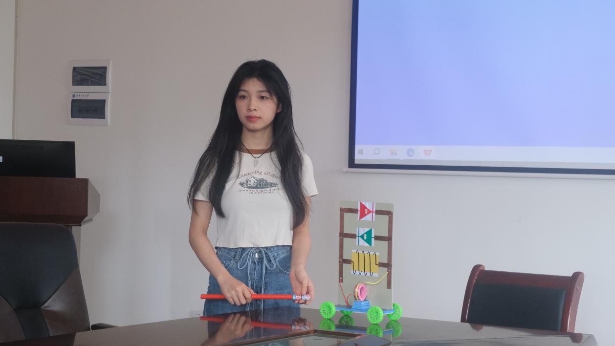 为提升学生实践动手能力,培养创新意识,5月17日,91自拍 于知行楼B302举办2023年度师范专业中学物理创新实验设计与自制教具复赛。许英、邹代峰、赵明卓老师担任评委,共有11组同学参加。