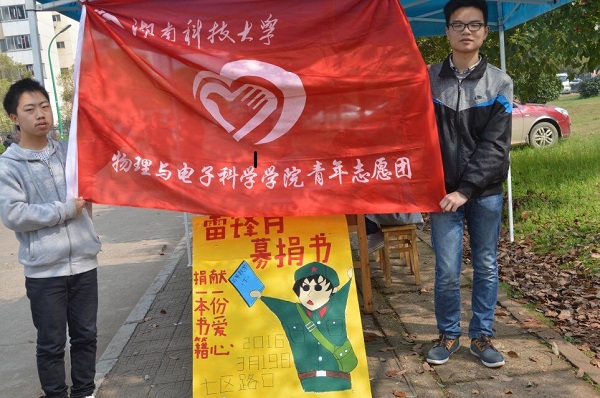 为更好地弘扬和传承雷锋精神,3月19日,我院在学生宿舍七区门口开展了以“捐一本书籍,献一份爱心”为主题的为期一天的回收旧书活动。此次活动由我院青年志愿团主办。