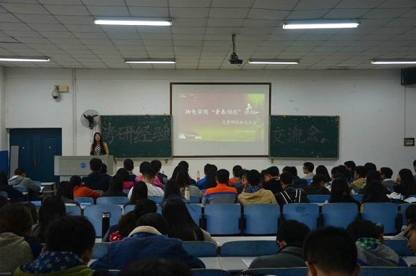 我院每年开展考研交流会,它不仅仅是经验的交流,更是一种精神的交流会。大家在交流会不仅学习到优秀学长学姐总结的宝贵的考研经验,更获得了拼搏的力量和自信。希望我院学生的考研率能够不断突破,再创新高。