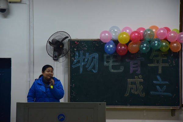 大会现场,张灯结彩,黑板上“物电青年志愿团成立大会”十一个大字熠熠生辉,洋溢着朝气与活力。7:00,大会正式开始。在唱完志愿团团歌并看完精心制作的志愿团活动剪影后,校志愿团代表上台发言,他对我院志愿团和志愿者的努力表示感谢,并希望新一届志愿团能够越做越好。伴随着热烈的掌声,上一届志愿团团长刘怀水上台讲话,他对新一届志愿团给予殷切希望,希望他们能以实际行动落实口号,加强团队建设,努力服务社会,并预祝新一届志愿团续写新的辉煌。现任团长张万里从老团长刘怀水手中接过团旗并合影留念,庄严隆重。之后是新团员宣誓仪式,宣誓仪式后,新任团长张万里发言,他动情地回忆了自己在志愿团的经历,并通过一个个动人的事例讲述了志愿者工作的艰辛与收获,他最后号召所有人一起支持志愿活动。