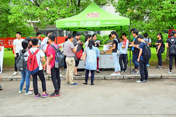 七区路口旁竖立着八块宣传牌,它们通过诚信还款、征信知识竞答、实例介绍三个部分详细介绍了办理国家助学贷款的申请、还款、续款等流程,旨在在91自拍普及助学贷款常识同时提高同学的诚信意识。摆点活动地点热闹非凡,有的拿着笔在红幅上签着自己的名字,有的拿着毛笔在折扇上写着有关诚信的名言,风趣幽默的绕口令更是吸引了许多人前来驻足。同学们通过参加有关诚信以及诚信贷款知识的有奖竞答小游戏了解到了助学贷款的常识以及提高了诚信为人的意识。