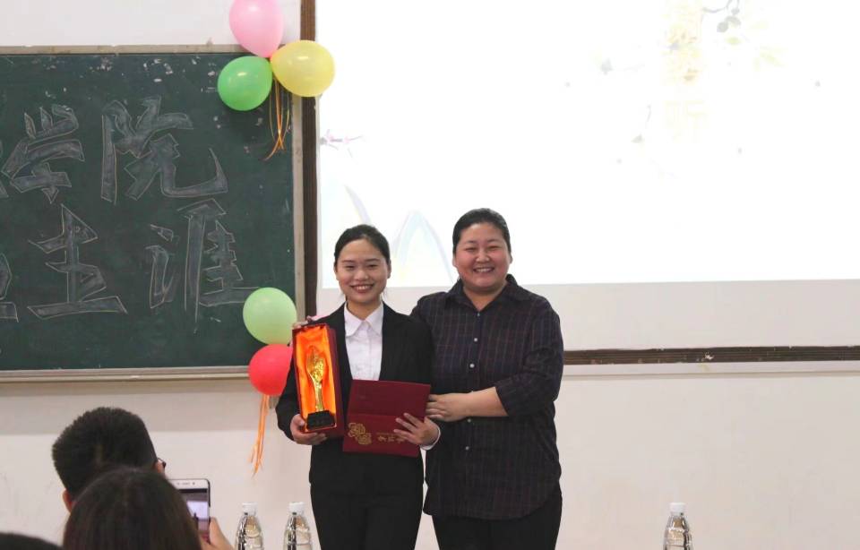 晋级决赛的十二位选手结合PPT从自我分析、环境分析、职业定位、计划实施、评估调整等5方面来阐述自己的职业梦想。选手们信心昂昂,从容不迫,“物理教师”、“驻外记者”、“会演讲的天文学家”、“开中式糕点店的物理老师”、“系统分析员”……一个个伟大的梦想在他们之间绽放。“努力是一切事物的起点”、“nothing is impossible”、“世上无难事,只要肯攀登”……无一不在诠释着对梦想的渴望与奋力拼搏的决心!整个比赛过程井然有序,学生们的职业生涯规划设计结构完整、逻辑清晰、重点突出,职业生涯目标制定贴切合理,演讲过程富有感染力。其中十号选手李文凤演讲别具一格,清晰的思路、严谨的未来规划使得她从初赛一路挺进决赛,在众多优秀选手中脱颖而出,以85.5分的佳绩摘得桂冠。