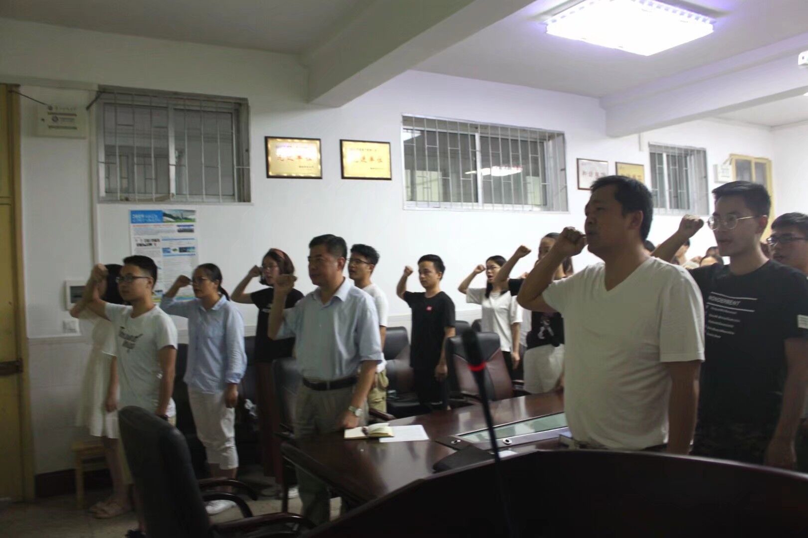 党委关于2018年上半年发展、转正学生党员的批复,23名同学被批准发展为中共预备党员,27名预备党员被批准转为中共正式党员。随后,预备党员吴元杰同志带领全体党员面向党旗庄严宣誓。 宣誓结束后,张煜翀同志代表全体新发展党员发言,承诺要时刻牢记党员身份,自觉地学习党的基础理论,增强责任感与使命感。