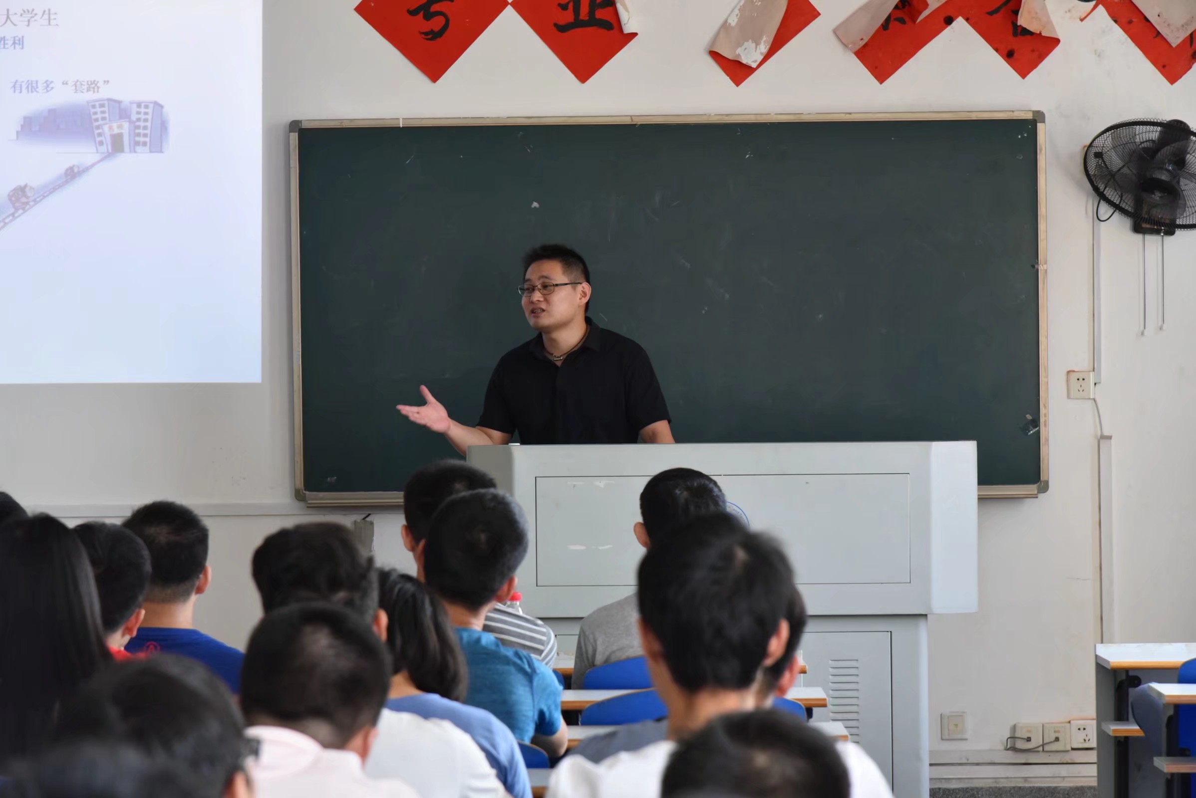 各专业主讲老师分别从发展历史、师资力量、师资队伍所获荣誉、科研项目、大学时间分配、考研率和培养标准等方面对各专业进行详细地介绍。其中光电信息科学与工程系主任唐海波老师指出光电系的考研率呈逐年上升趋势,从10%左右的2014届到现在超过33%的2018届,考研率位居全校前列。唐海波老师还强调我院的学习氛围良好,培育出了一大批科研人才。物理师范系系主任许英老师重点向同学们介绍了大学时间的分配。她指出大一大二需要打好基础,大三大四需要做些研究性的学习,并且强调学习是学生的第一要务,其他活动都不能成为停止学习的理由。电子信息科学与技术系主任则对大学期间需要培养的标准做了详细的介绍。