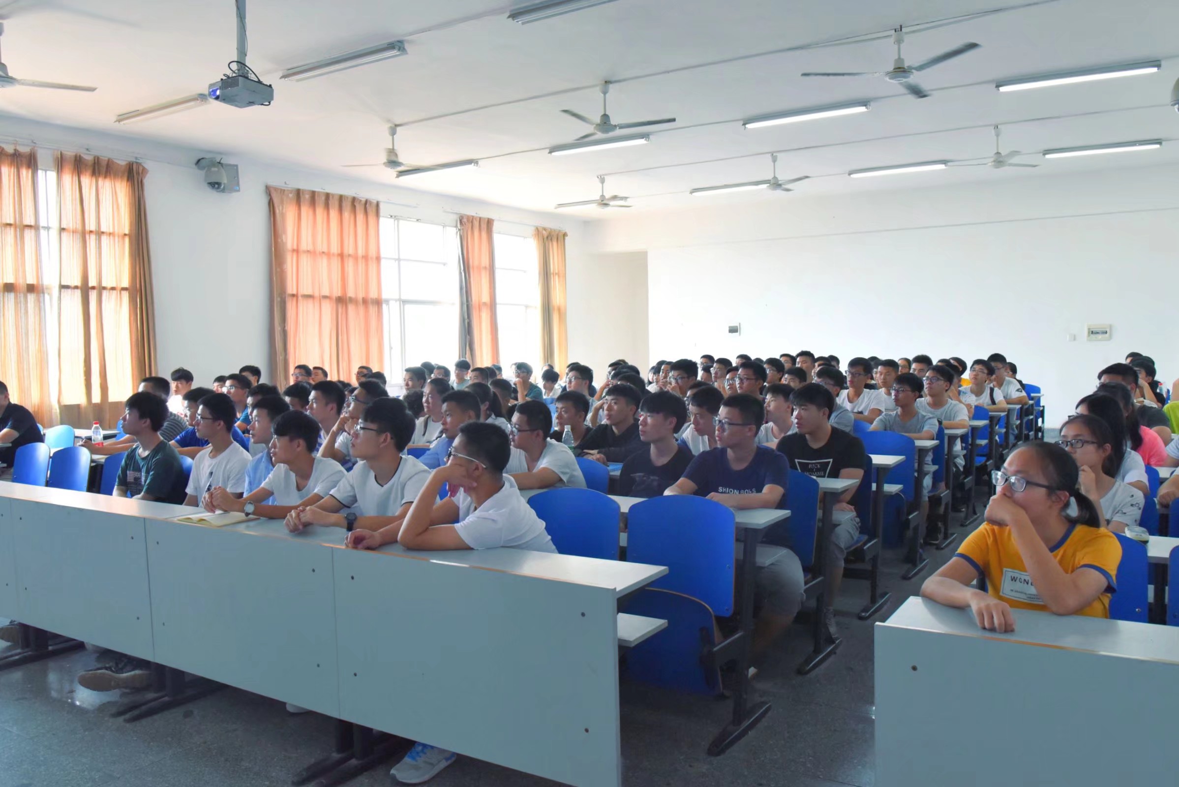 为了让2018级新生对自己所学的专业有更深地了解,我院新生专业教育于9月10日早上10:00在第九教学楼410、511、612三个教室举行。许英老师、盛威老师、唐海波三位系主任分别对物理、电子和光电三个专业的新生进行了专业教育。