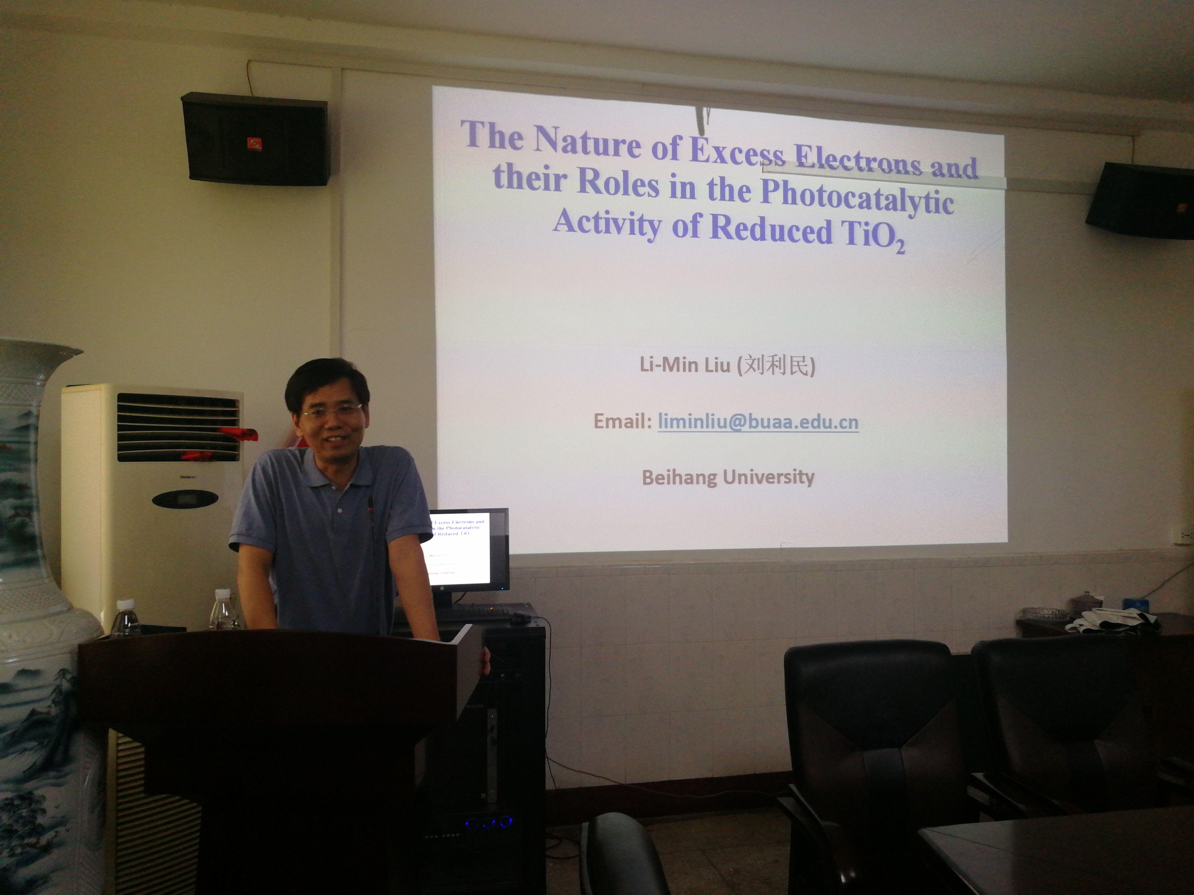 9月14日下午14:30,国家优秀青年科学基金获得者、中组部“青年千人计划”入选者、北京航空航天大学物理91自拍 刘利民研究员,应邀在我院物理楼213作了关于“二氧化钛光催化活性的影响”的学术报告。我院部分教师以及全体研究生参加此次报告会。