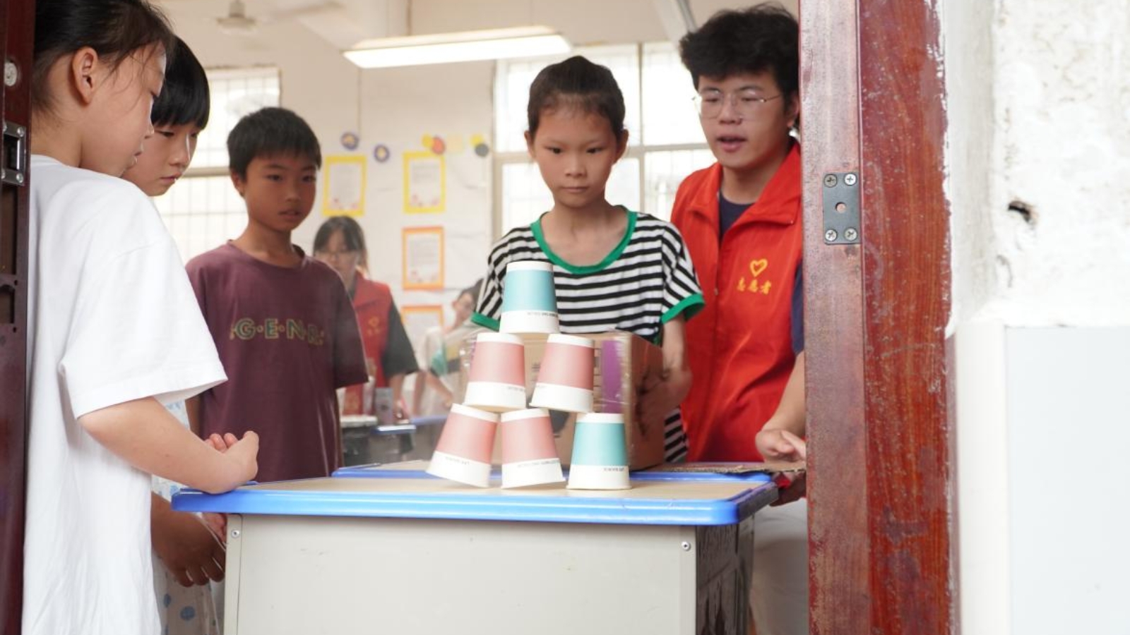 空气炮实验激发实践热情。志愿者以火炮史切入空气动力学原理,演示空气炮击倒纸杯过程并解析现象背后蕴含的科学知识,辅助学生们制作空气炮。学生们轮番上阵,体验发射空气炮的快乐,于趣味实践中领悟科学奥秘。