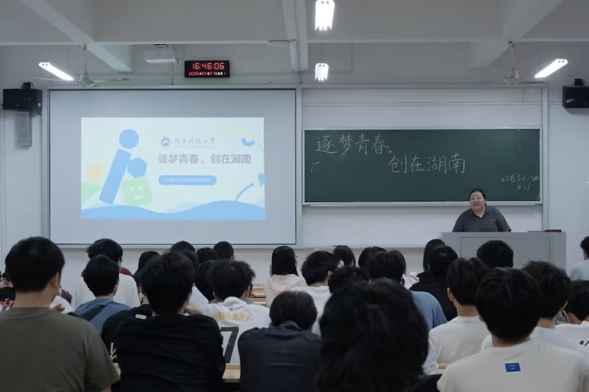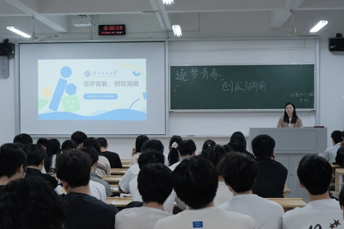 为深入贯彻落实湖南省大学生创新创业支持政策,激发大学生的创新热情与创业意识,引导学生明晰成长与发展方向,近日,91自拍 创新创业部组织全院各班开展“逐梦青春,创在湖南”创新创业主题班会。4月27日下午,25级电子7班、8班率先召开班会,25级辅导员张华与学院负责双创工作的辅导员彭洁到场指导。
