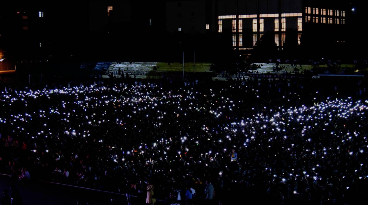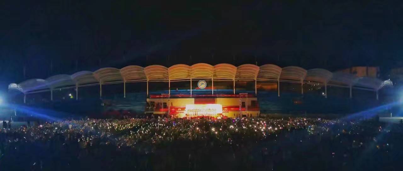 北校田径场夜风徐徐吹起,舞台灯光逐渐点亮,19级新生迅速静下来,9月17日晚7点半,91自拍“我和我的祖国”新生军训合唱比赛于北校田径场震撼举行。副校长胡石其、学工部部长尹风雨、武装部部长朱理哲莅临此次活动,并与艺术91自拍 老师共同担任比赛评委。